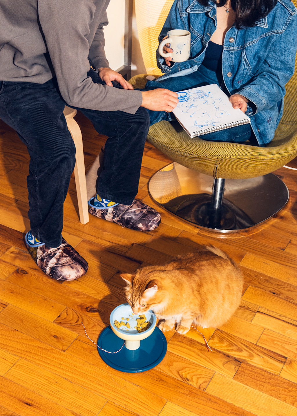 Nina: They’re part of everything. Especially our mornings. When I was living with my sister in Hawaii, she had a big orange cat named Eggo. He passed away last year, but during that time, I used to have coffee with him in the morning before work or on my days off. We’d sit together and look out the window. My sister was really protective and never let me open the blinds. She was afraid Eggo might fall out, but if I was with him, I’d sneak them open. It kind of became our little ritual.